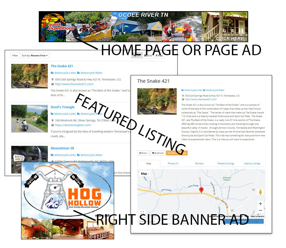 We offer several different ways to ADVERTISE YOUR BUSINESS within the Motorcycle Travel Network as a whole or for each ride individually that relates to your business by location. Whether your a car or motorycle club our advertising gives our sponsors the most direct traffic and leads to their businesses.